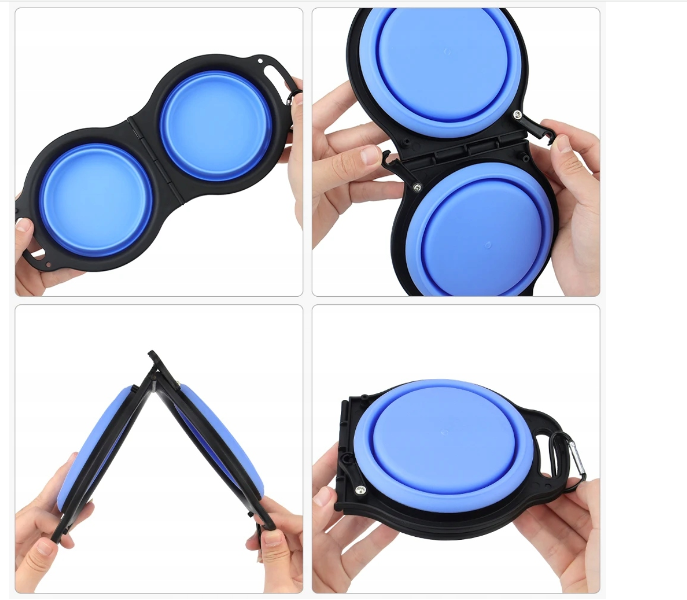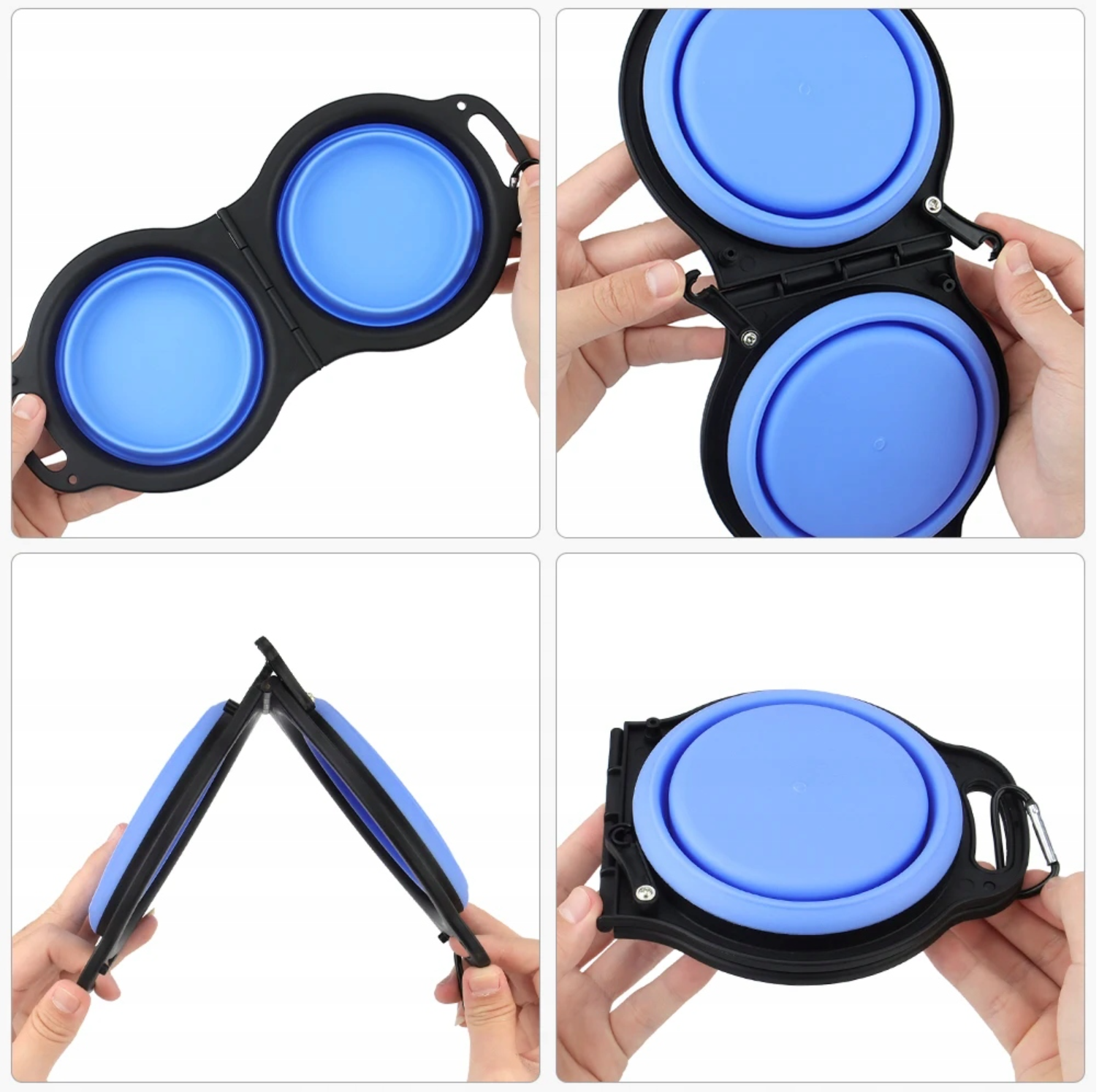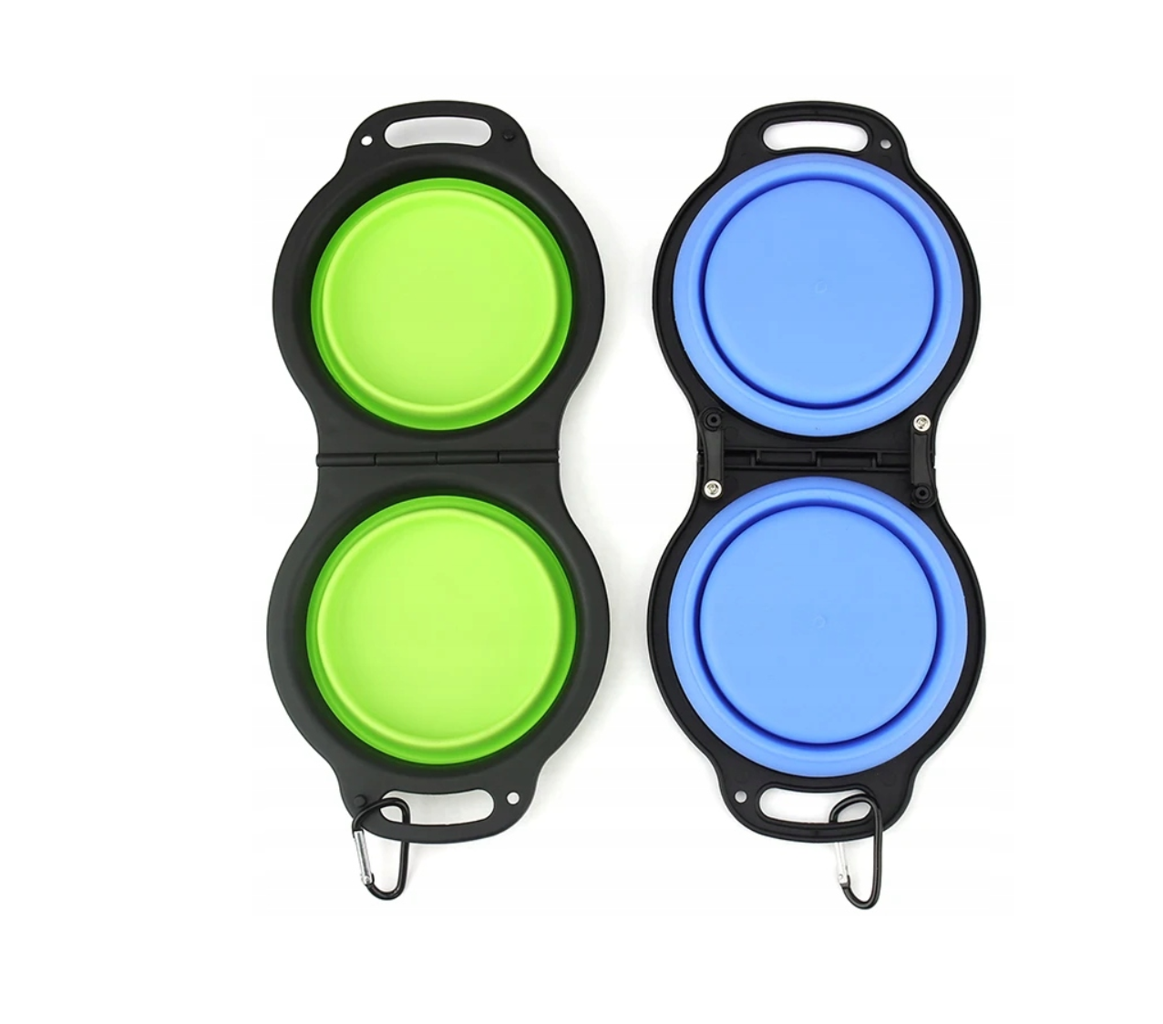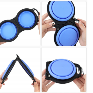 Skládací cestovní miska 2 v 1 pro psy a kočky. Dvě misky na vodu a jídlo, silikon, lehká, odolná a s karabinou. Ideální na cesty i výlety.