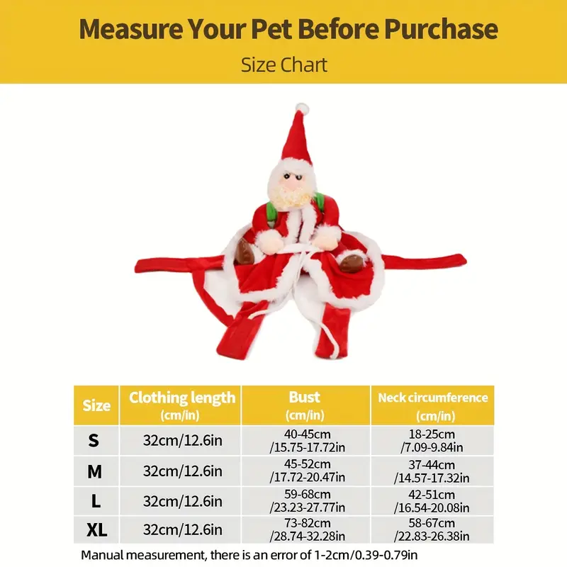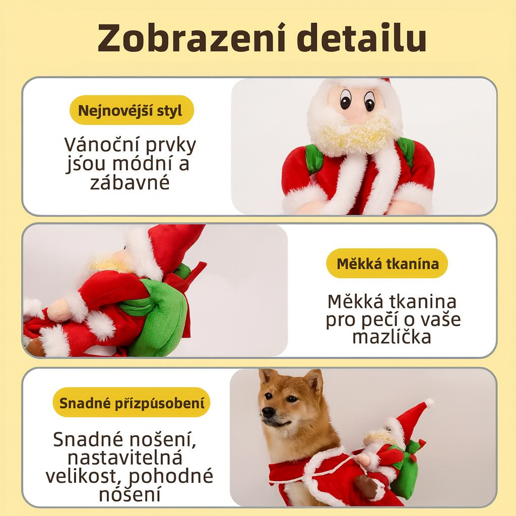 Dodejte svému mazlíčkovi sváteční náladu s tímto roztomilým a pohodlným vánočním kostýmem ve stylu Santa Clause. Ideální pro malé a střední psy – na vánoční focení, domácí oslavy, návštěvy i procházky.