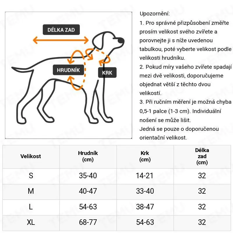 Doporučení: Pokud je váš pejsek mezi dvěma velikostmi, zvolte tu větší.