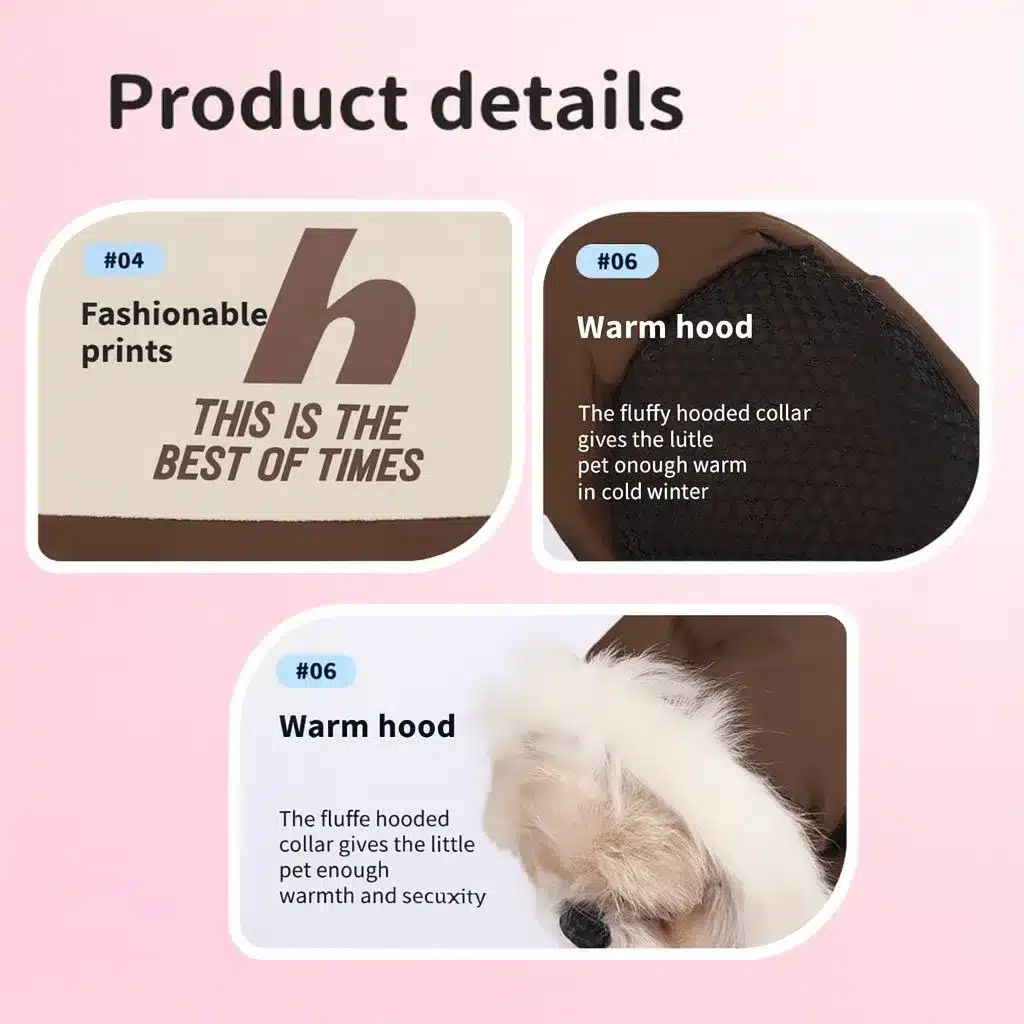Vnitřní podšívka udrží vašeho mazlíčka v teple i během mrazů, zatímco vnější materiál je větruodolný a voděodolný – ideální pro podzimní i zimní procházky.