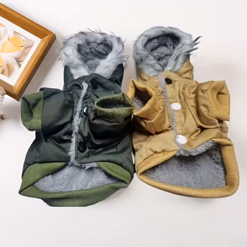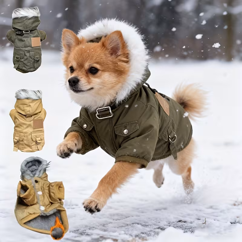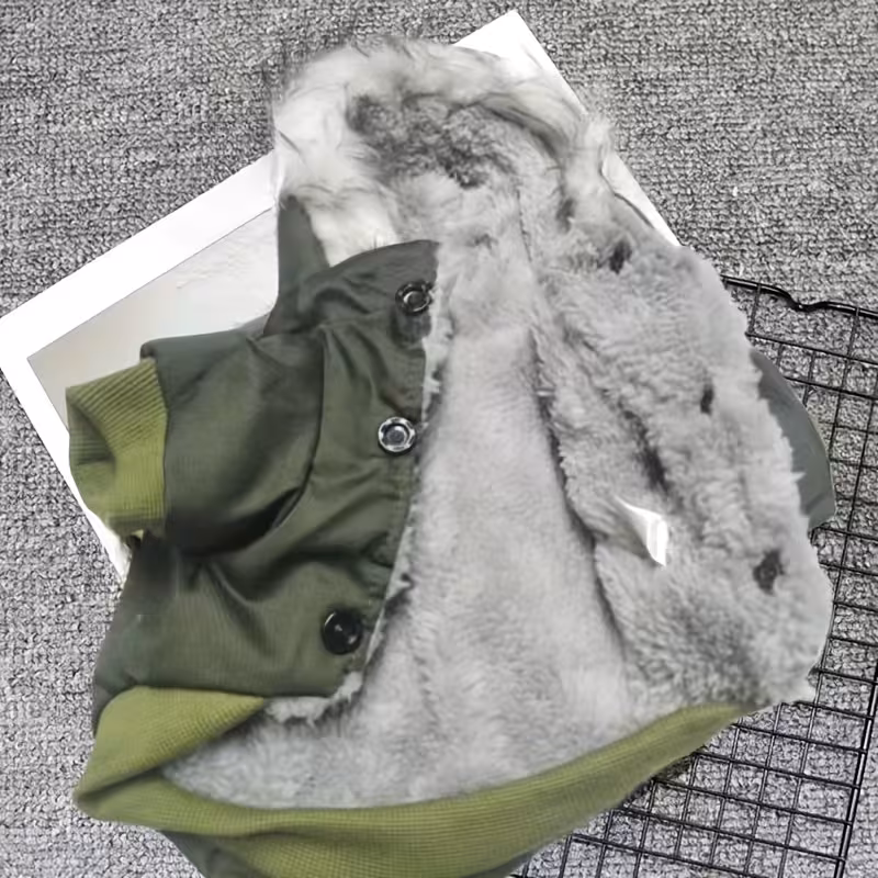 Tato stylová vojenská zimní bunda pro psy kombinuje teplo, pohodlí a odolnost.
