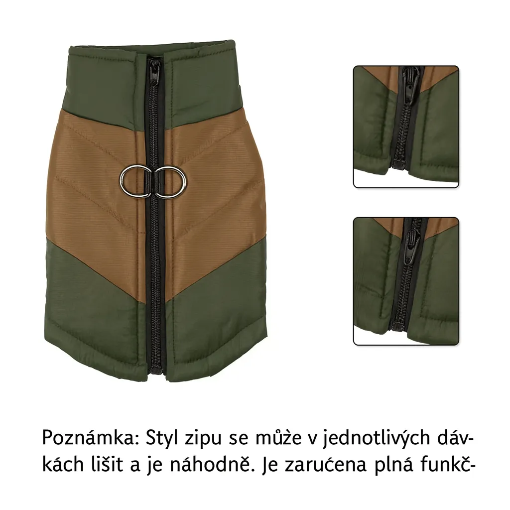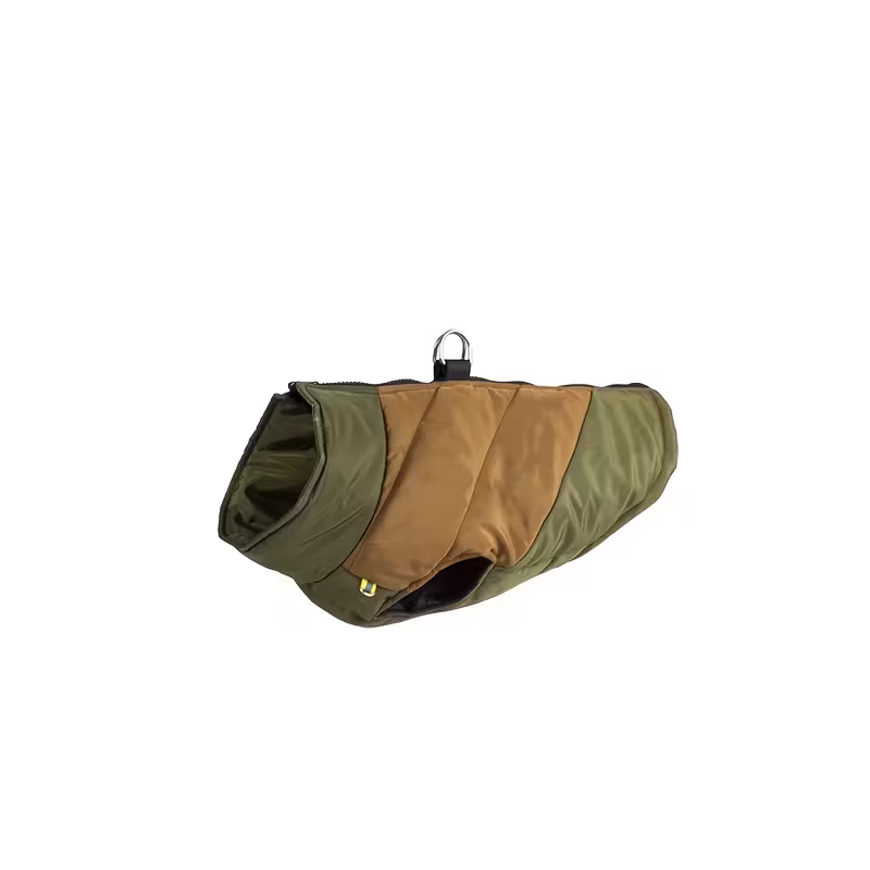 Střih je navržen tak, aby psovi umožnil maximální volnost pohybu, a díky nastavitelným popruhům kabát dobře sedí na těle a neklouže. Horní D-kroužek umožňuje snadné připnutí vodítka, takže kabát lze používat i jako lehkou outdoorovou vestu.