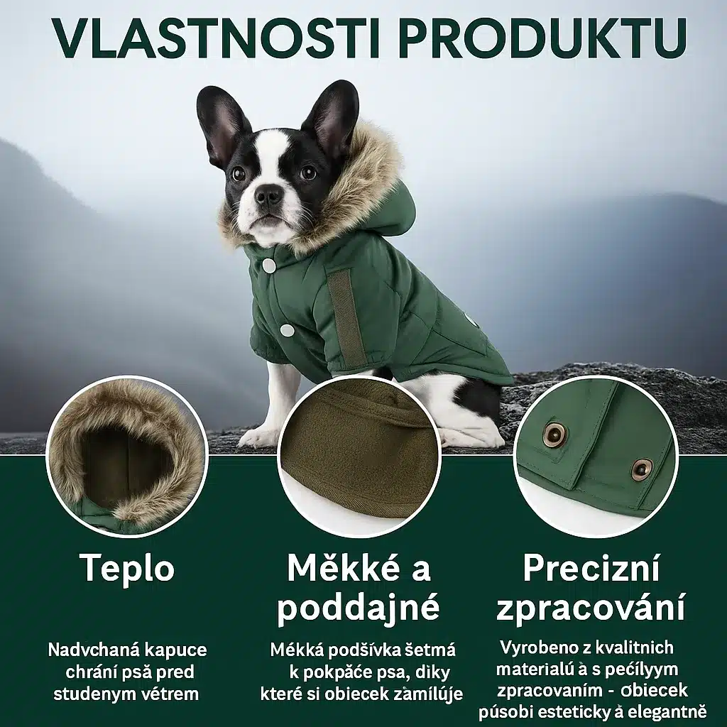 zimni kabat pes, oblecek pro psy, teply kabat pes, kapuce pes, kozeseina pes, zimni obleceni pes, venloro, mazlicci, tepla bunda pes, zimni moda pes