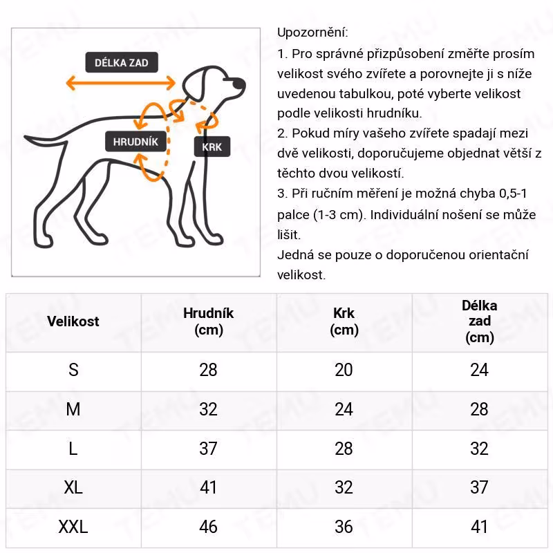 ⚠️ DŮLEŽITÉ UPOZORNĚNÍ K VELIKOSTI