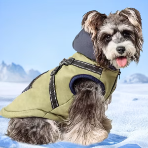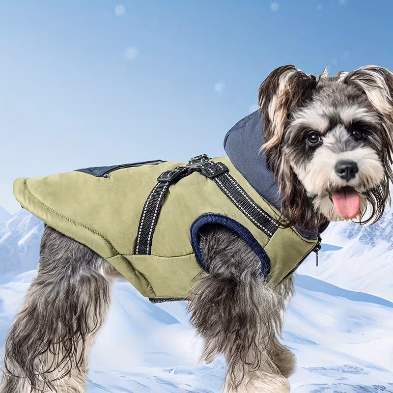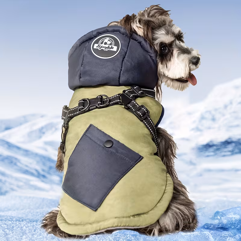 Teplá zimní bunda pro malé a střední psy. Větruodolná, polstrovaná, s odepínací kapucí a pohodlným zipem. Dostupná ve dvou barvách a všech velikostech.