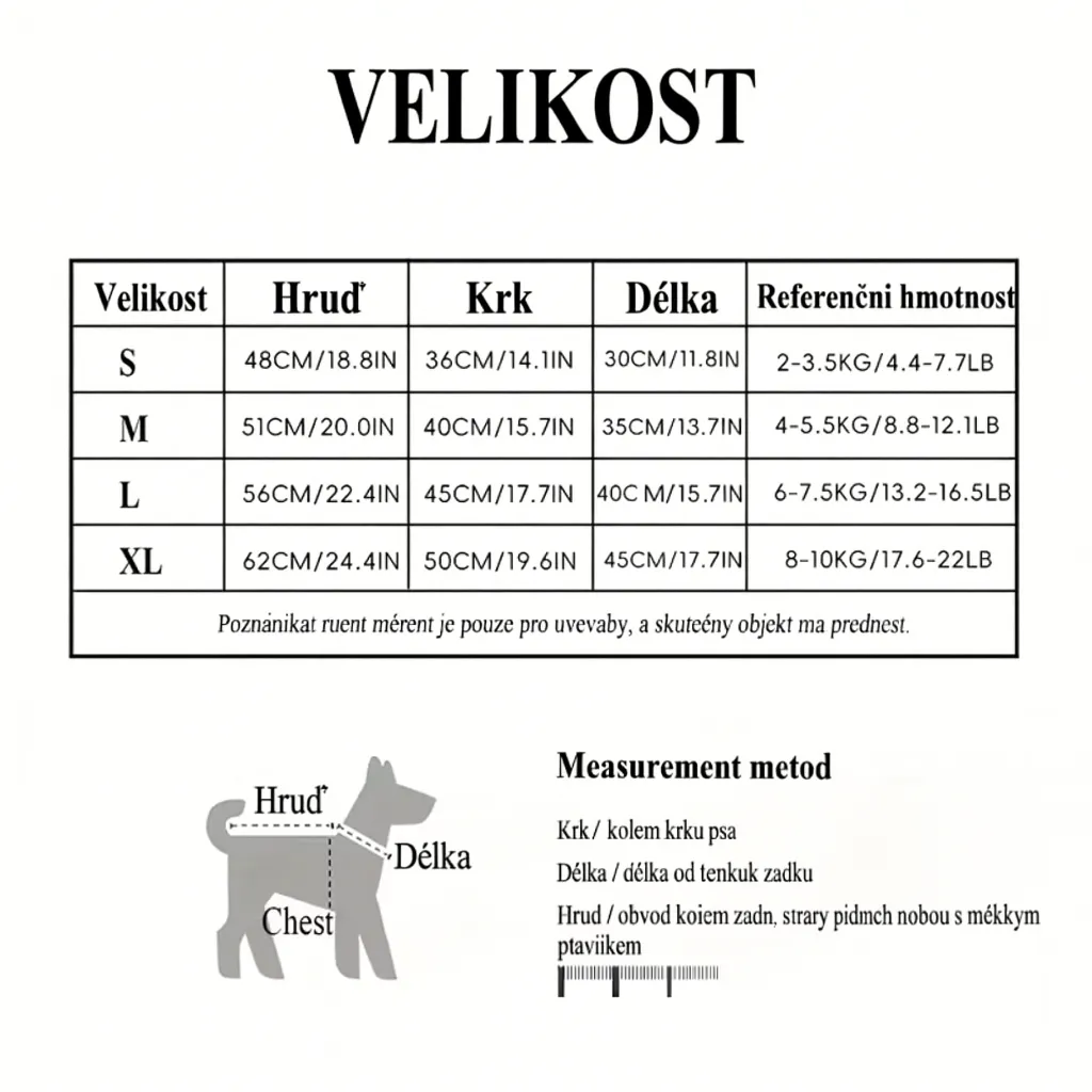 Každý pejsek má jinou stavbu těla a velikosti se mohou lišit podle produktu.