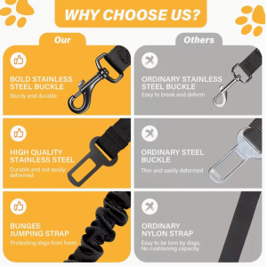 Zajistěte bezpečnost svého mazlíčka při cestování autem s naším nastavitelným bezpečnostním pásem pro psy. Tento pevný a pružný popruh s kovovou sponou a uzamykacím mechanismem je kompatibilní se všemi vozy – SUV, sedan i nákladními automobily. Díky nastavitelné délce je vhodný pro malá, střední i velká plemena. Dostupný ve dvou barvách: černá a červená.